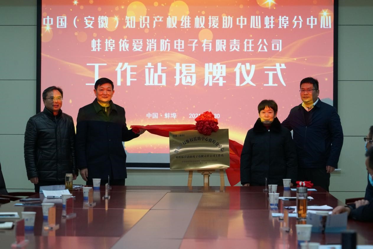 熱烈祝賀中國(安徽)知識(shí)產(chǎn)權(quán)維權(quán)援助中心蚌埠分中心蚌埠依愛消防電子有限責(zé)任公司工作站揭牌儀式圓滿成功