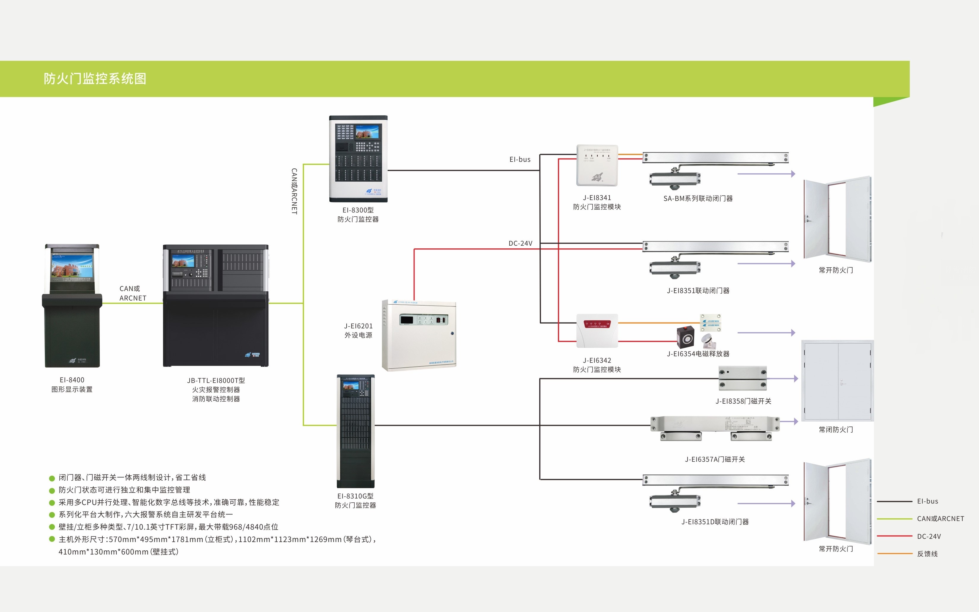依愛消防防火門監(jiān)控系統(tǒng)是由防火門監(jiān)控器、防火門監(jiān)控模塊及消防電源箱三部分組成。